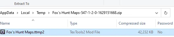 - In the file explorer window that appears, navigate to the location where you extracted the Fox's Hunt Maps.ttpm2 file in step1. Note: do not confuse with the .zip file originally downloaded from the nexusmods website.