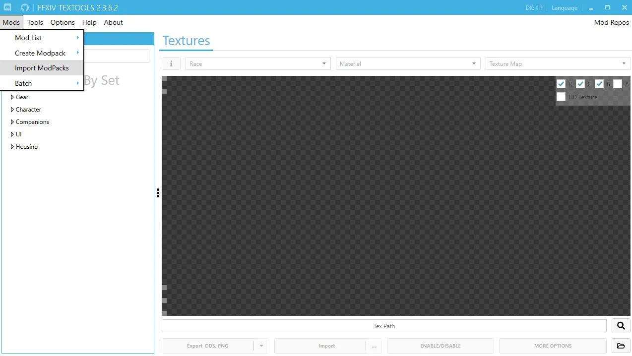 - Open FFXIV Textools from your start menu or install directory.