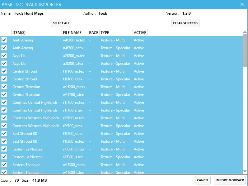- Double click the .ttpm2 file or click the file and click open. A basic modpack importer window will appear with all of the zone maps selected. You can pick and choose specific maps to import at this time.